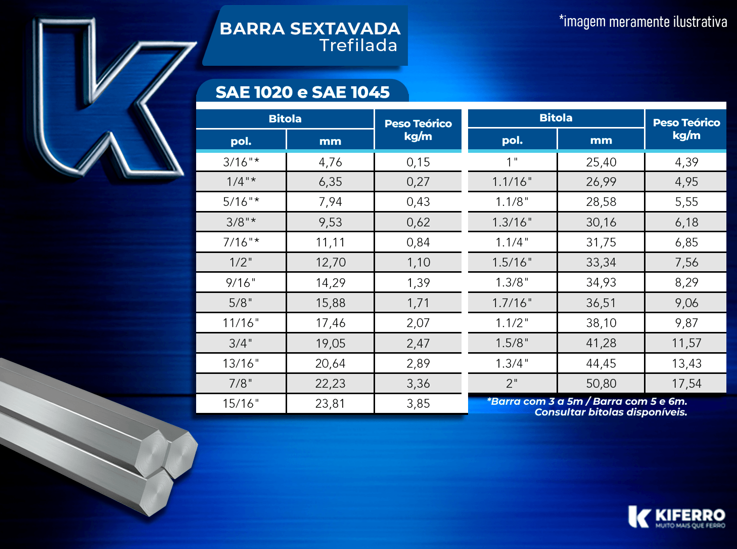 Também conhecida como: ferro sextavado trefilado